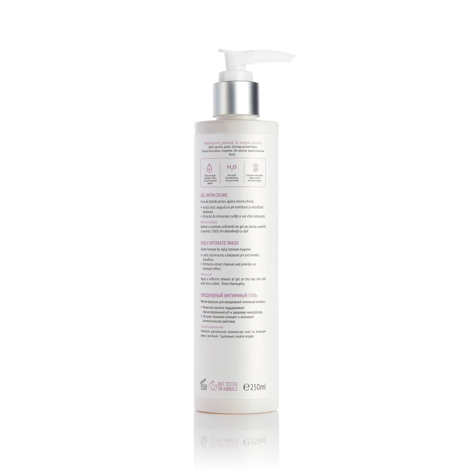 Cu un pH adaptat mediului acid genital și îmbogățit cu extract de Echinacea purpurea și acid lactic, acest gel curăță delicat, protejează flora vaginală și oferă o senzație de prospețime și confort pe parcursul întregii zile.