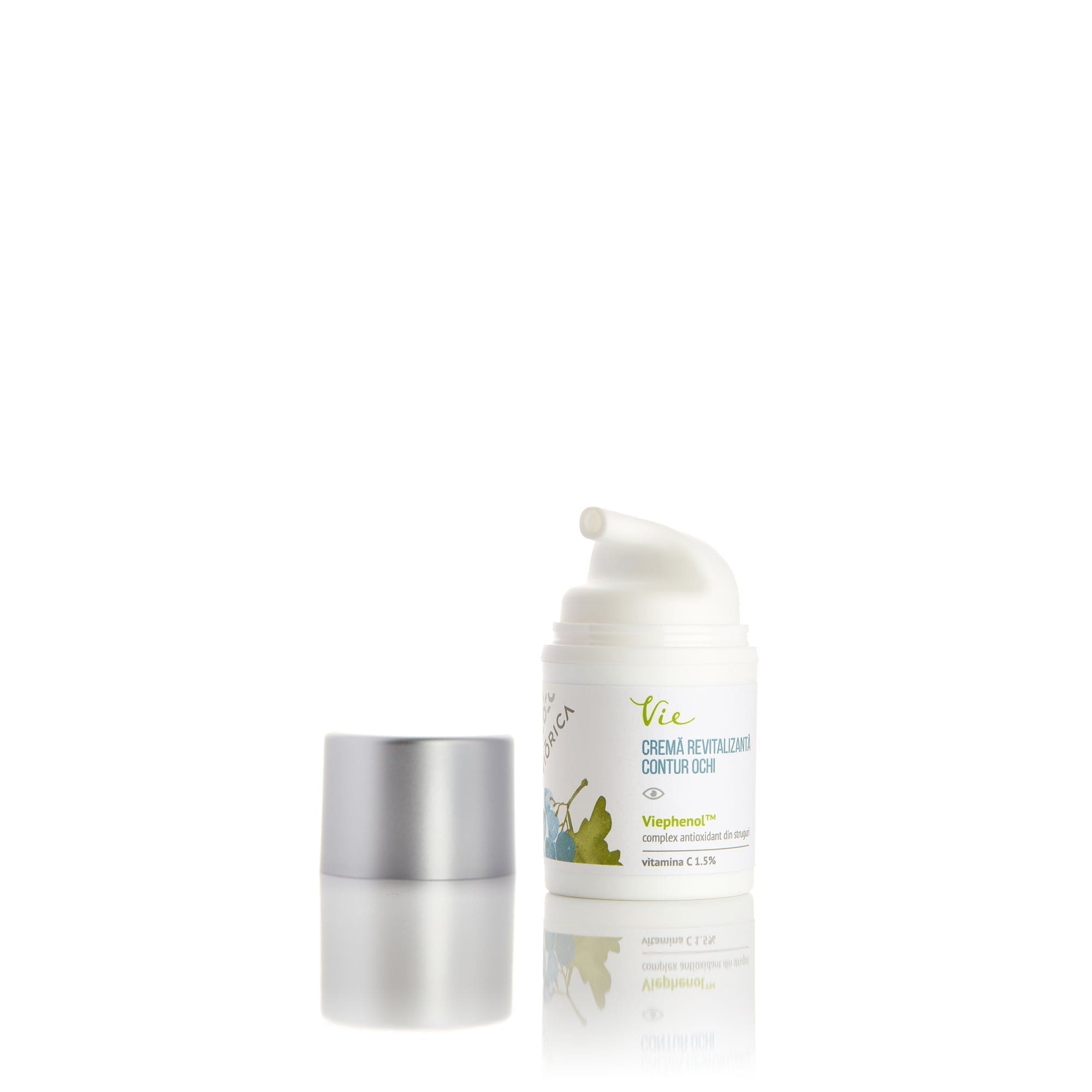 Combinația perfectă dintre complexul antioxidant patentat de semințe de struguri Viephenol™, cele 3 extracte naturale și Vitamina C asigură îngrijire complexă pielii vulnerabile din zona pleoapelor. Ingredientele active ultraeficiente stimulează regenerarea celulelor, îmbunătățesc fermitatea pielii, reduc edemul și cearcănele și previn apariția ridurilor.